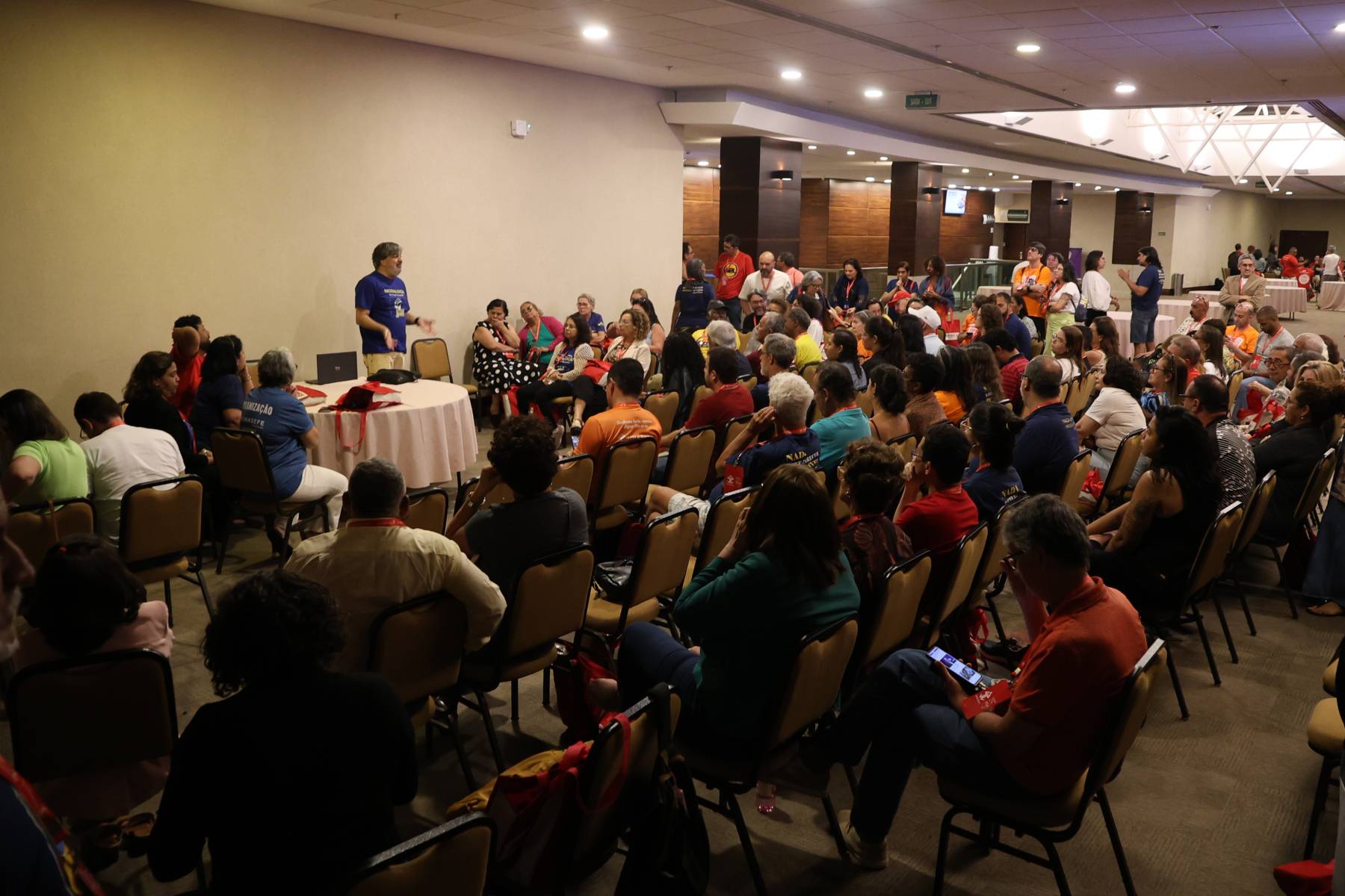 No útimo dia, o plenário do congresso avaliou, debateu e aprovou teses de conjuntura e encaminhamentos diversos, entre eles relacionados ao 14º Encontro Nacional de Assuntos de Aposentadoria e Seguridade Social (ENAASS) e a campanha de cobranças dos acordos de greve.