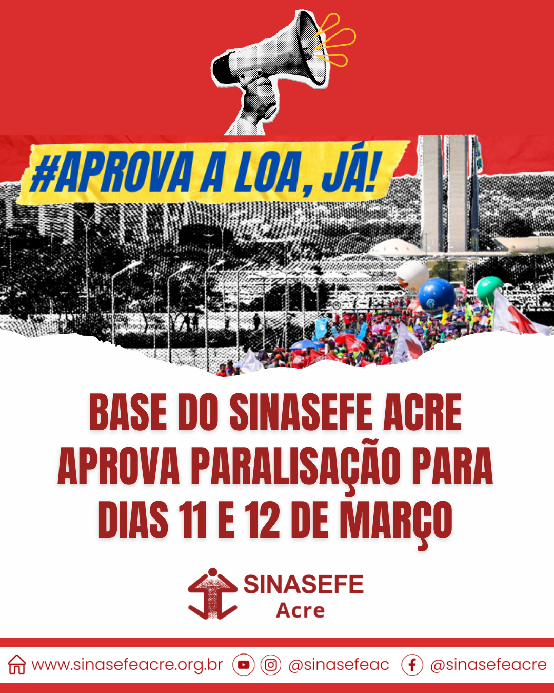 “Aprova LOA, já!”: base do Sinasefe Acre aprova paralisação para os dias 11 e 12 de março“Aprova LOA, já!”: base do Sinasefe Acre aprova paralisação para os dias 11 e 12 de março