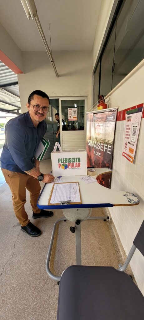 Nossa seção tem urna do Plebiscito Popular e nesta terça-feira, 25/08, recebemos os votos das/os servidoras/es que participam da jornada pedagógica no Ifac-campus Rio Branco.